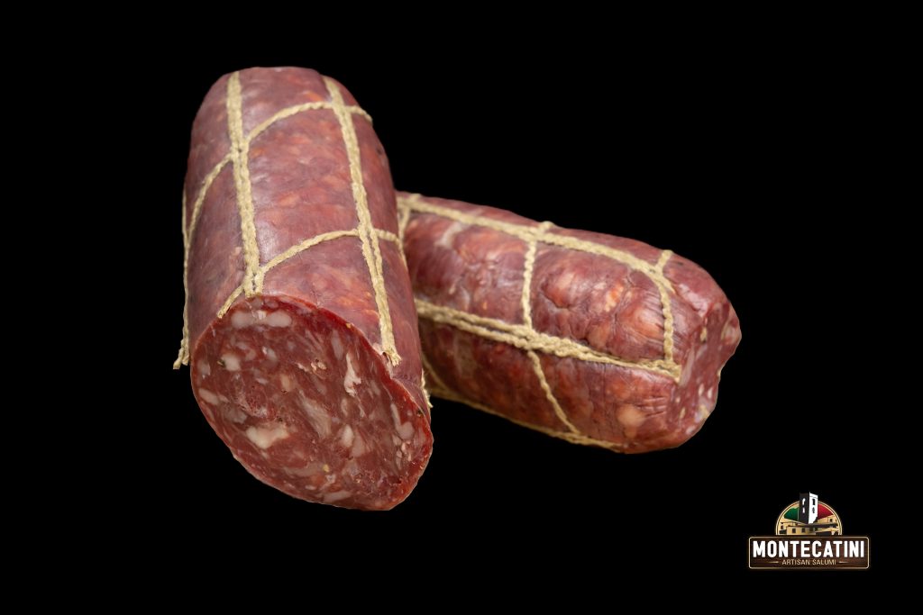 Infused with horseradish and wasabi this salami has a delicious gentle warmth to it. It’s ideally paired with more subtle cheeses such as a mild cheddar or brie, but is so versatile it’s a great accompaniment to any charcuterie board.